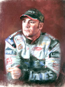 CA-159 Jimmie Johnson Nascar art print tin sign. A collection of yesterday's signs. Great for decorating homes, offices, restaurants, etc. Lithographed steel metal. Mounted on a black 20" x 16" card. CA159.