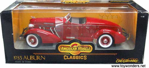 7995R ERTL - American Muscle Classic Auburn Convertible (1935). 1:18 scale. Diecast metal free wheel classic antique model car with opening doors/hood. Black interior. '35 Auburn Convertible. RC2 Brands. RED color.