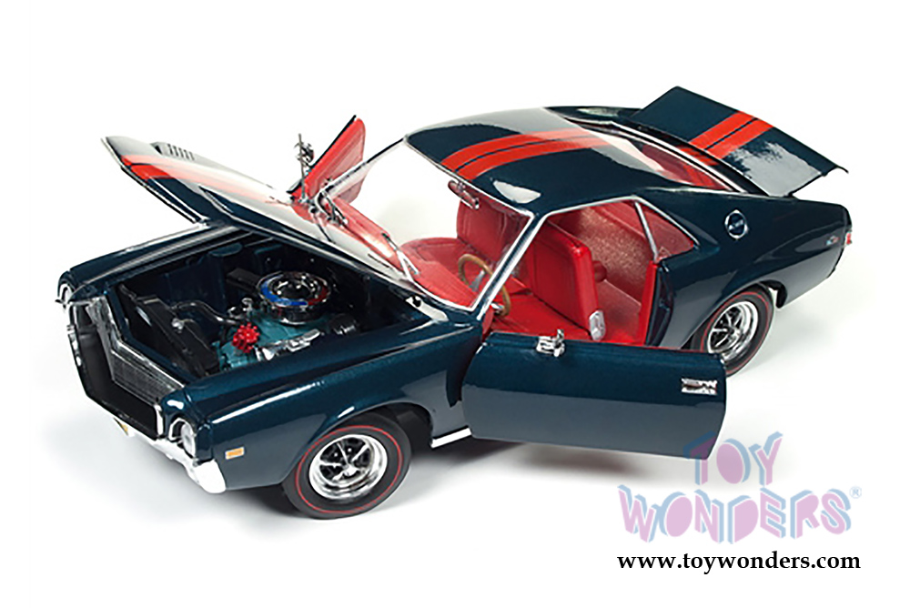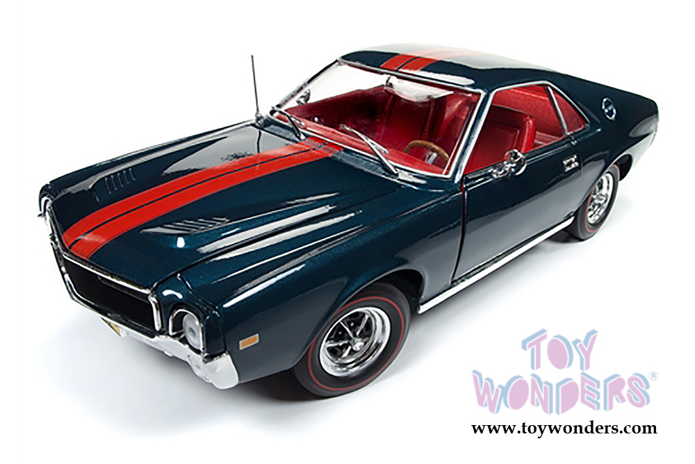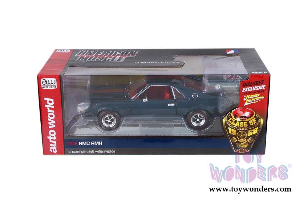 Auto World American Muscle - AMC AMX Class of 1968 with a 1/64 scale replica by Johnny Lightning (1968, 1/18,1/64 scale diecast model car, Blazer Blue) AMM1124