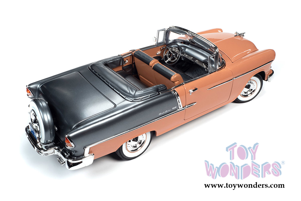 Auto World has replicated this 1955 Chevy Bel Air convertible in factory-matched Coral and Shadow Gray two-tone paint. This was one of 23 available two-tone options in 1955!
