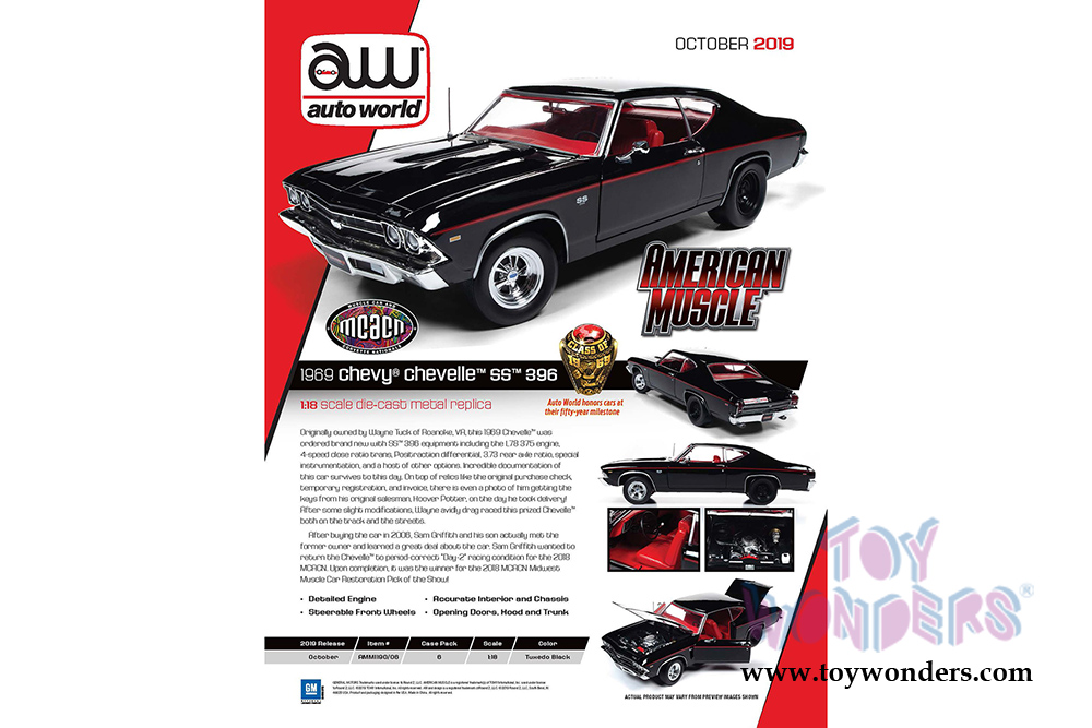 Auto World American Muscle - Chevy® Chevelle® SS 396 Hardtop Muscle Car & Corvette Nationals (MCACN) (1969, 1/18 scale diecast model car, Tuxedo Black) AMM1190