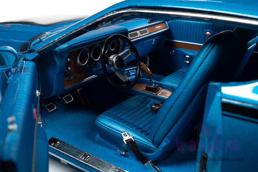 Motor Trend nominated it one of the top 10 cars of the year. It was the only traditional muscle car of the group as it stood out among the new compacts launched that same year. This GB5 bright metallic blue ’71 Charger is definitely something unique and would be a great addition to your American Muscle car collection.