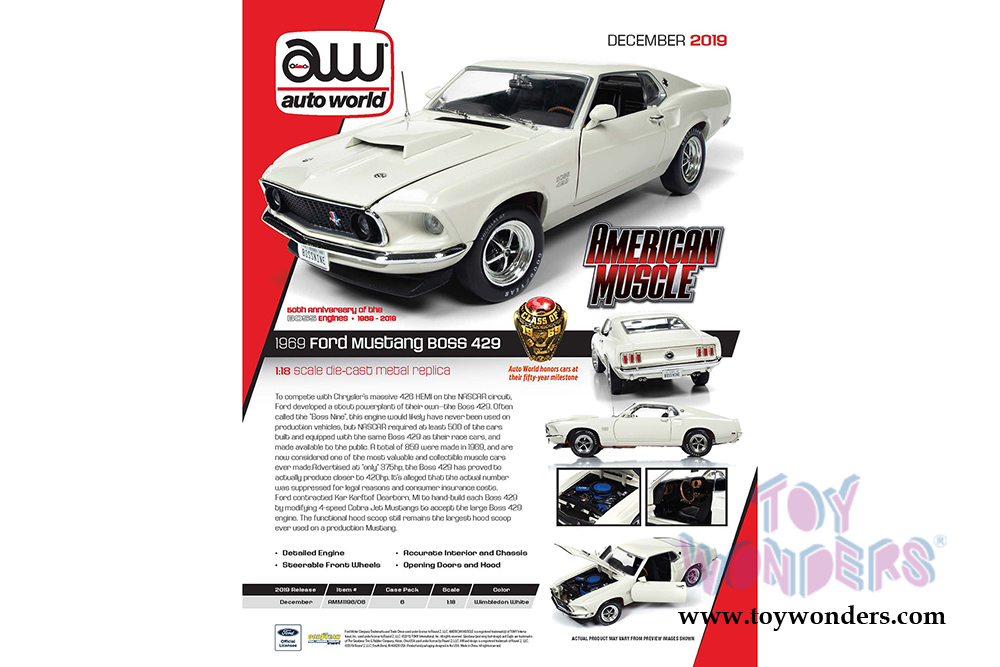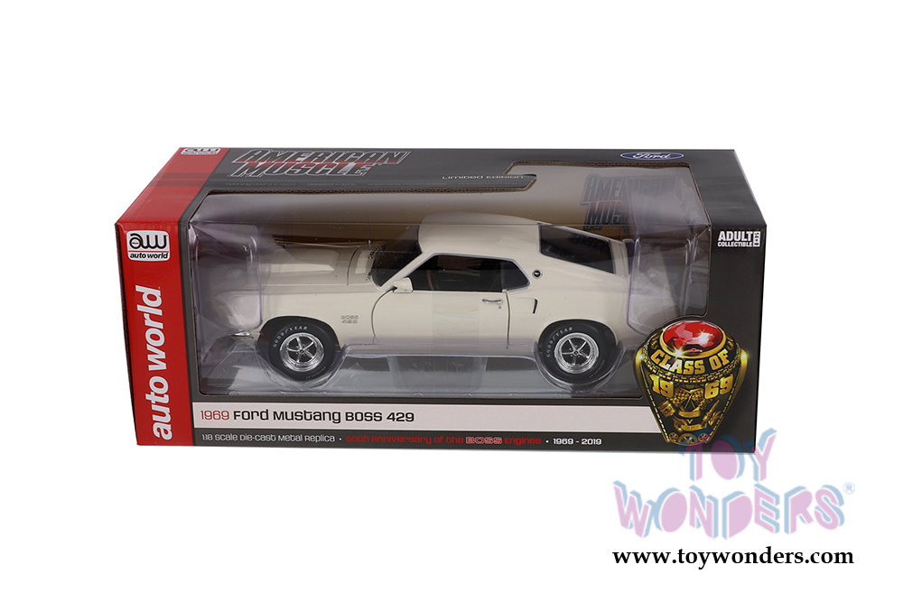 Auto World - American Muscle | Ford Mustang Fastback Boss 429 Hardtop Class of '69 50th Anniversary (1969, 1/18 scale diecast model car, Wimbledon White) AMM1196