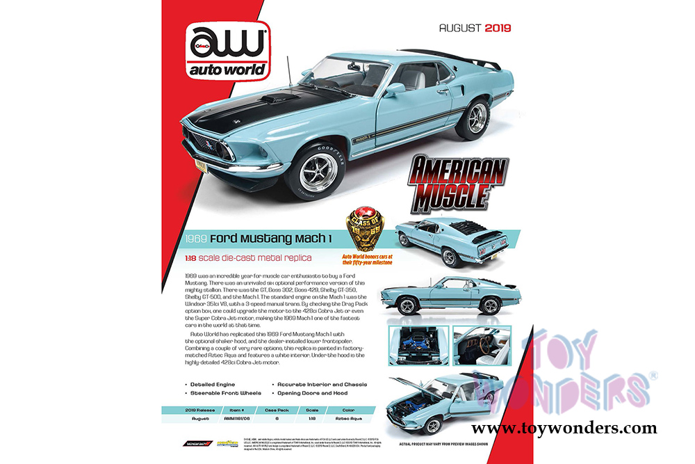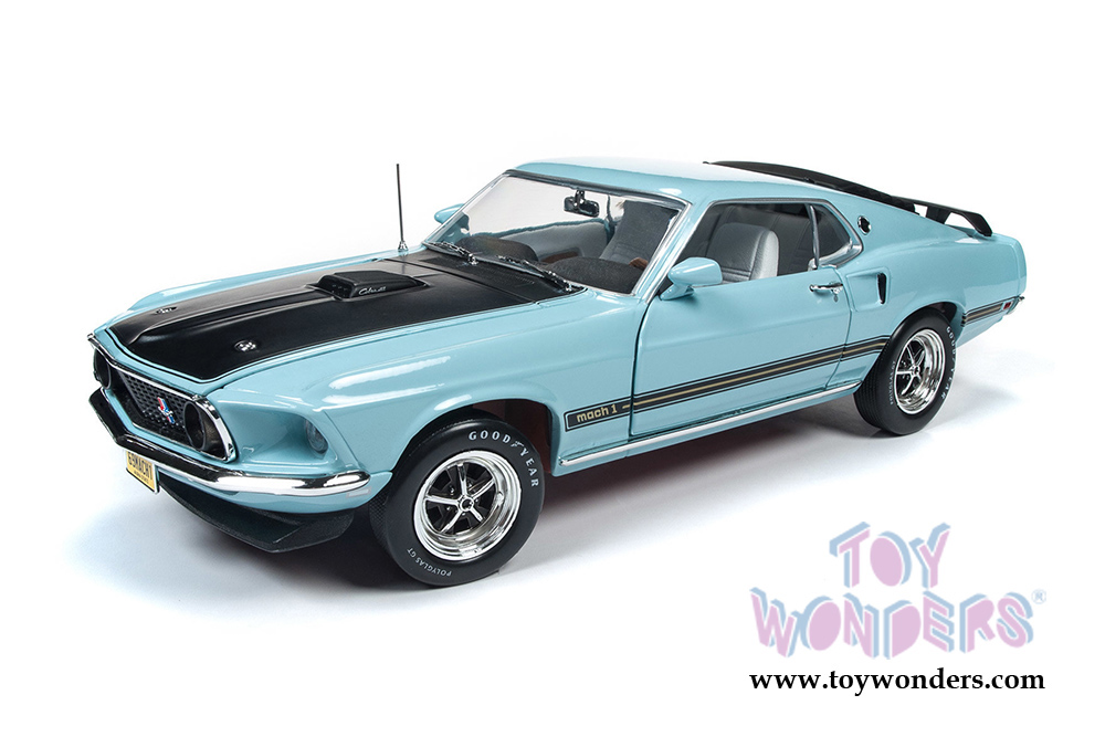 Auto World - American Muscle - Ford Mustang Mach 1 Hardtop Class of '69 50th Anniversary (1969, 1/18 scale diecast model car, Aztec Aqua) AMM1181