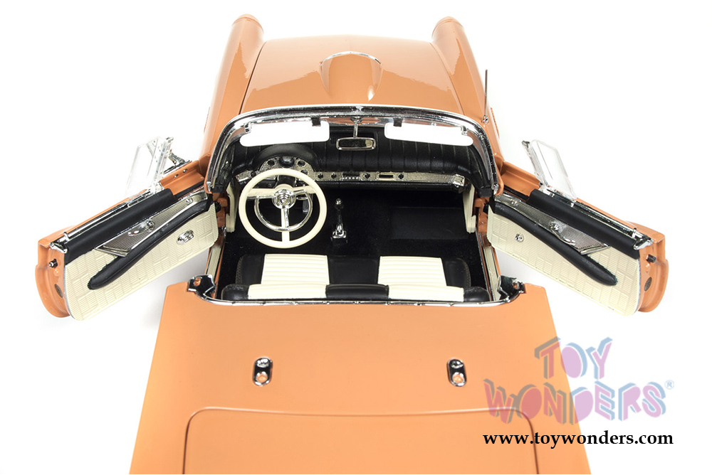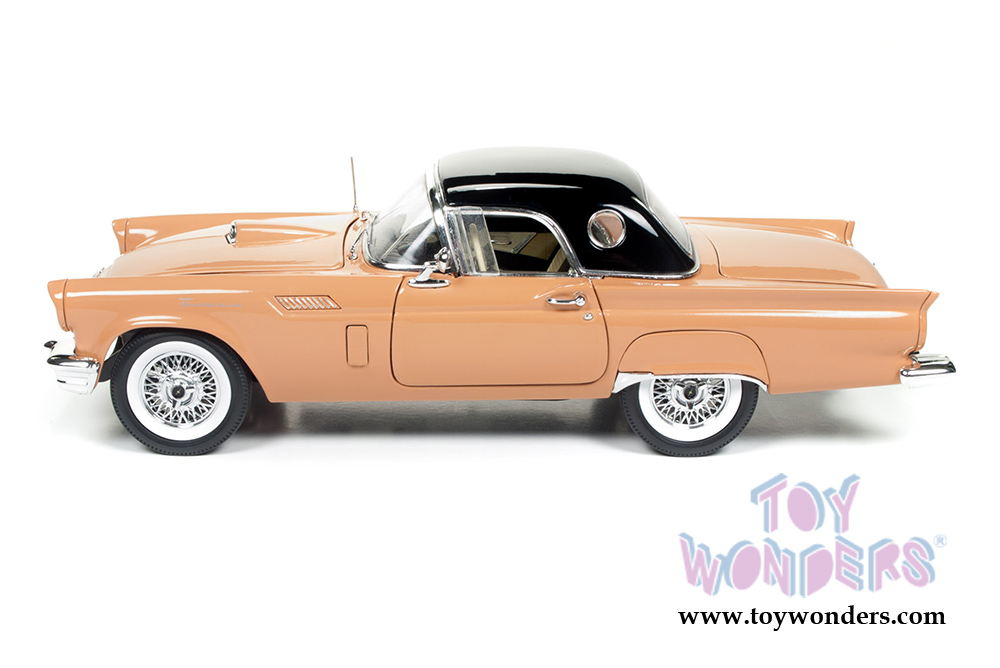 Auto World American Muscle - Ford Thunderbird Convertible w/ Removable Black Bonnet 60th Anniversary edition (1957, 1/18 scale diecast model car, Coral Sand) AMM1098