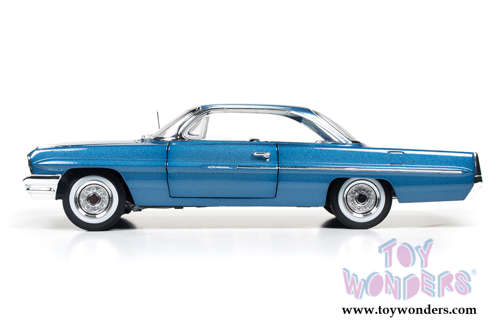 Auto World American Muscle - Hemmings Classic Car | 1961 Pontiac Catalina Hard Top. 1:18 scale diecast collectible model car. This Pontiac Catalina is an 11.5"L x 4"W x 3"H die-cast metal car with openable hood, doors and trunk, steerable front wheels, and detailed engine, accurate interior, chassis and trunk. This 61 Pontiac Catalina is manufactured by Auto World. Individually packed in a window box. Box size: 13.25"Lx 6.1"Wx 5"H. AMM1080 is in BLUE color. GM is a trademark of the General Motors Corporations.