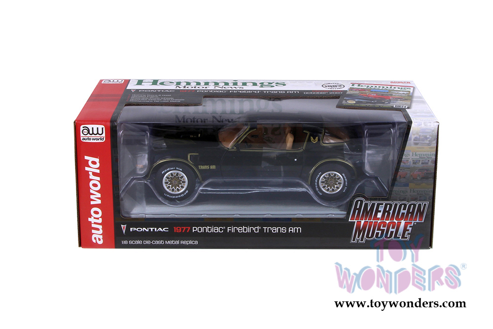 Auto World American Muscle - Hemmings Muscle Machines | Pontiac® Firebird® Trans Am Cover Car October 2007 (1977, 1/18 scale diecast model car, Black) AMM1177