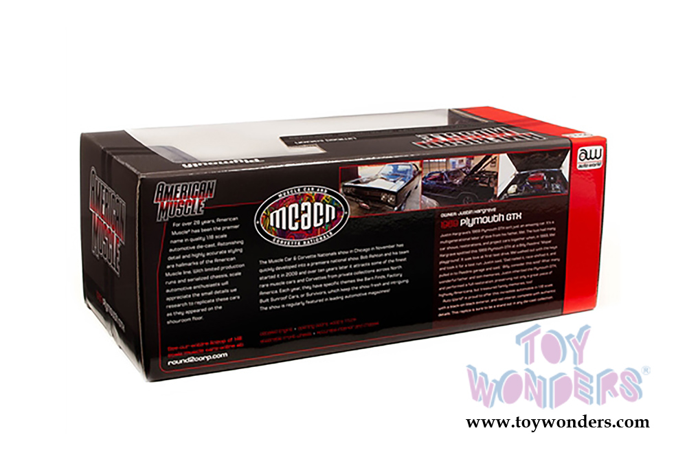 Auto World - American Muscle - Plymouth GTX Hardtop Muscle Car & Corvette Nationals (MCACN) (1969, 1/18 scale diecast model car, Black Velvet) AMM1204