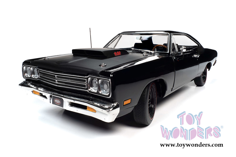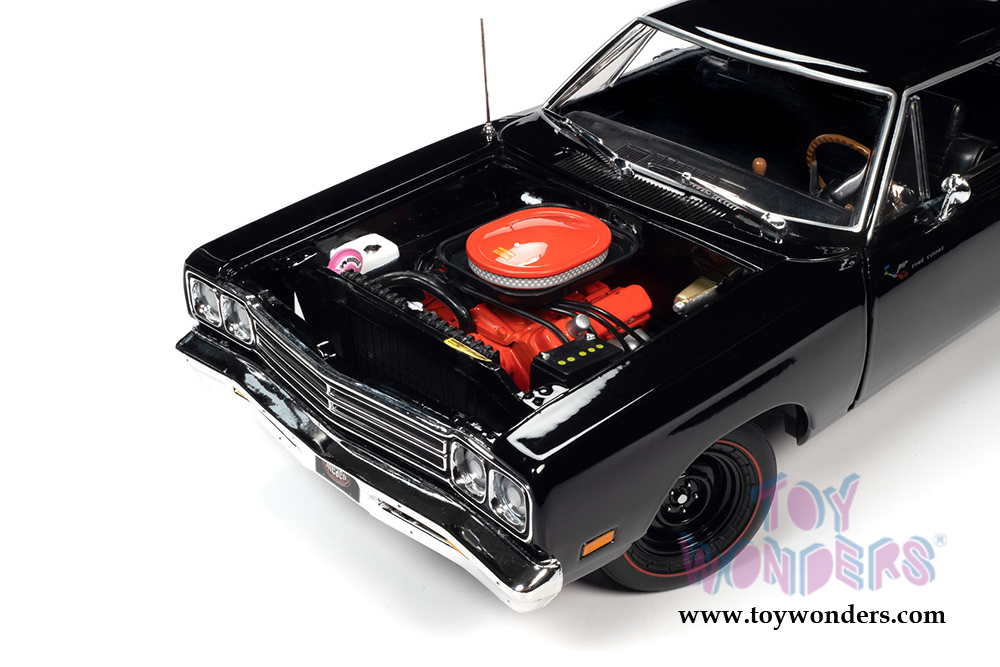 Auto World - American Muscle - Plymouth Road Runner Hardtop Muscle Car & Corvette Nationals (MCACN) (1969.5, 1/18 scale diecast model car, Black Velvet) AMM1232
