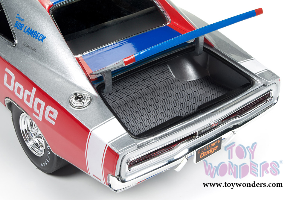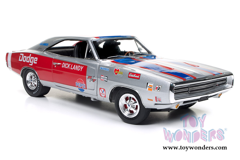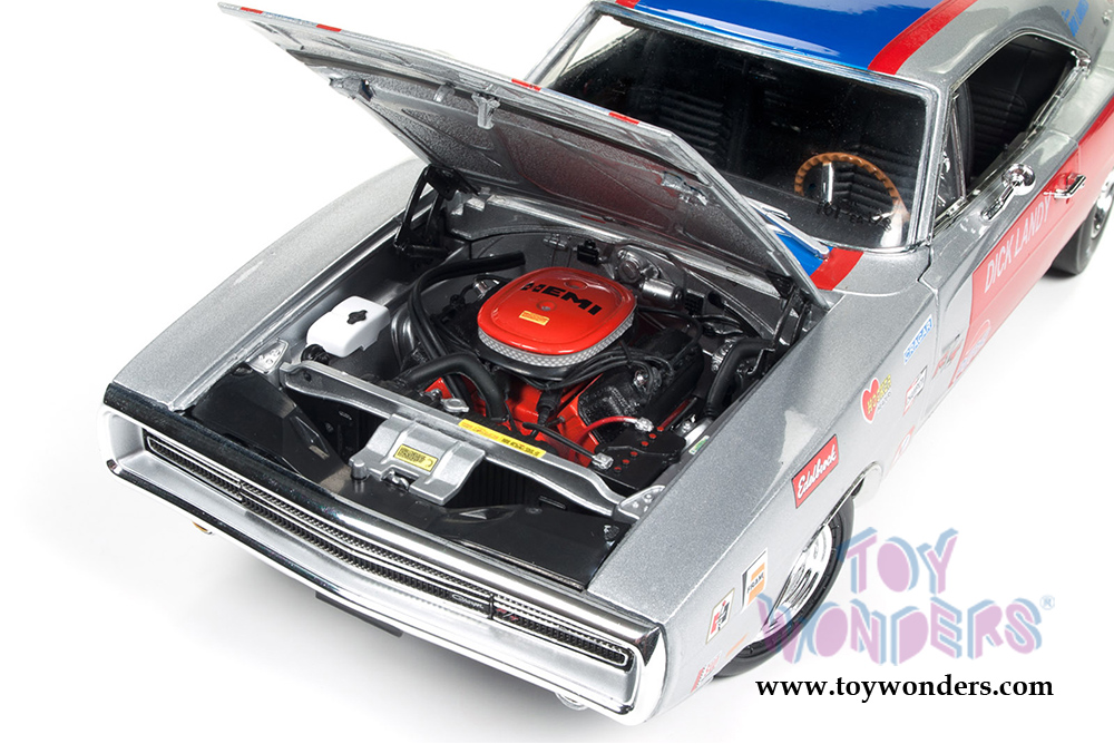 Auto World - Dodge Charger R/T - Dick Landy (1970, 1/18 scale diecast model car, Gray, red and blue stripes) AW238