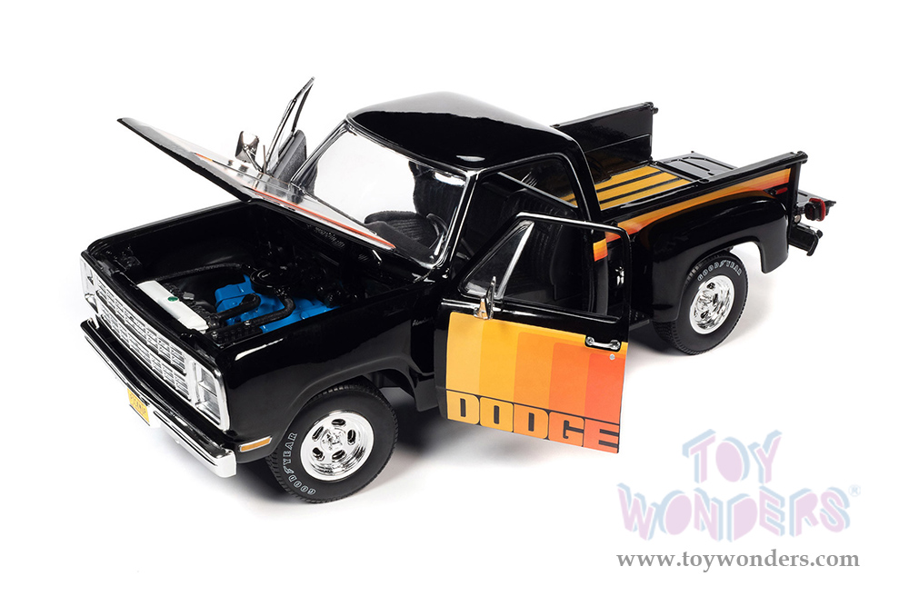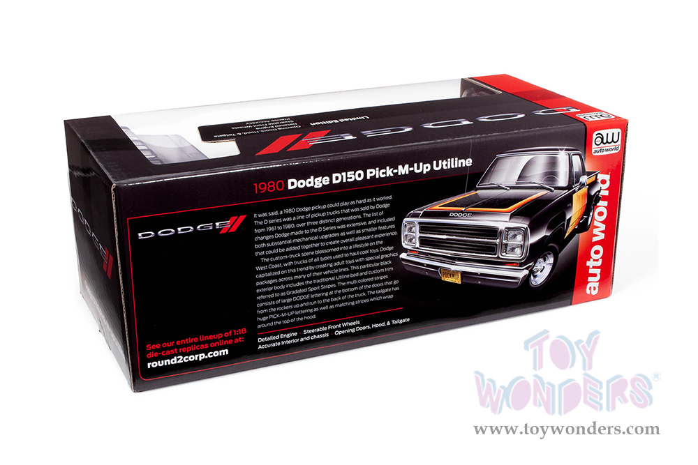 Auto World - Dodge D150 Pick-M-Up Utiline Pickup Truck (1980, 1/18 scale diecast model car, Black with multi-colored sport stripes) AW291