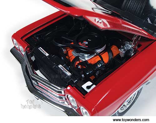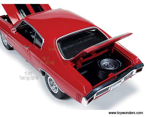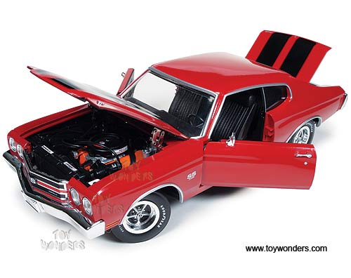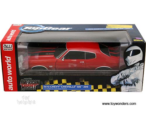 AMM1021 Auto World ERTL American Muscle BBC Top Gear - 1970 Chevy Chevelle SS 396 Hard Top. 1:18 scale diecast collectible model car. This Chevrolet Chevelle SS396 is a 10.5"L x 4"W x 2.75"H die-cast metal car with openable hood, doors and trunk, steerable front wheels, and detailed engine, accurate interior, and chassis. This 70 Chevy Chevelle SS 396 is manufactured by Auto World. Individually packed in a window box. Box size: 13.25"Lx 6.1"Wx 5"H. AMM1021 is in CRANBERRY RED color. GM is a trademark of the General Motors Corporations.