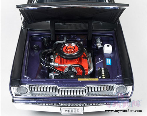 The Duster was introduced in 1970 as a 2-door semi-fastback version of the Plymouth Valiant to compete with the Chevy® Nova™ and the Ford Maverick. It was a huge success for Plymouth. In 1971, the Plymouth Duster lost its affiliation with the Vailant brand name and became its own separate brand. This die-cast replica features many of the popular options available in 1971. The blacked out hood was available in other model years, but only 1971 could have the factory installed 340 Wedge hood decal. Behind the "shark tooth” grill, a distinct characteristic of 1971 and 1972, lives the optional 340 cu. in. 4bbl 5.6L V8