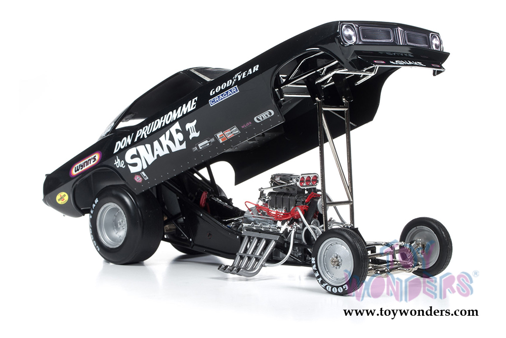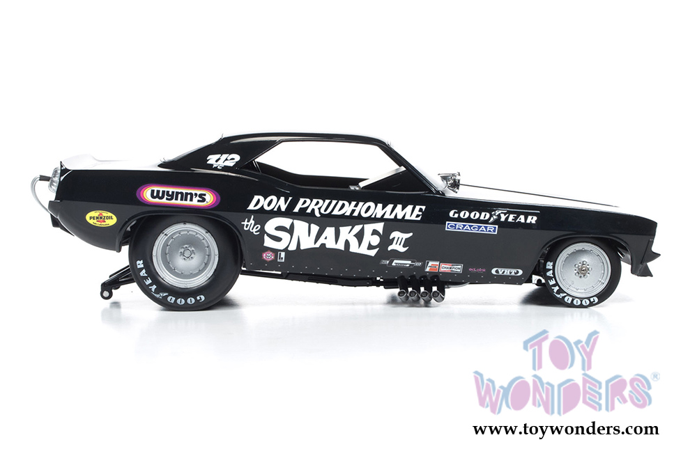 Auto World Legends - Don Prudhomme The Snake III Plymouth Cuda NHRA Funny Car (1973, 1/18 scale diecast model car, Black) AW1177