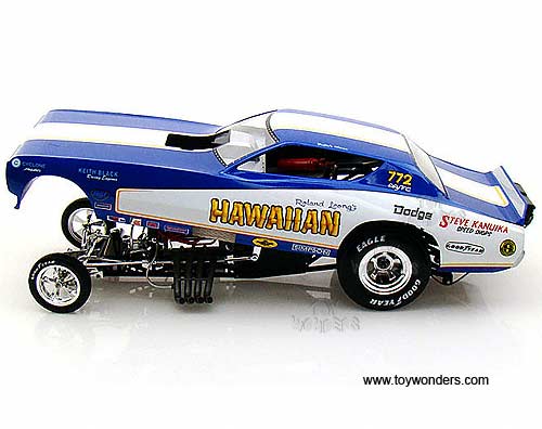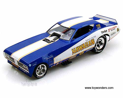 Auto World Legends - Hawaiian Dodge Charger NHRA Funny Car (1971, 1/18 scale diecast model car, Blue w/ White Stripes) AW1105