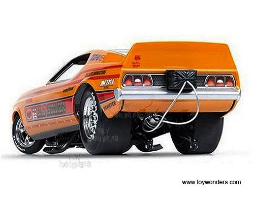Auto World Legends - L.A. Hooker Ford Mustang NHRA Funny Car (1971, 1/18 scale diecast model car, Orange w/ Red Stripes) AW1106