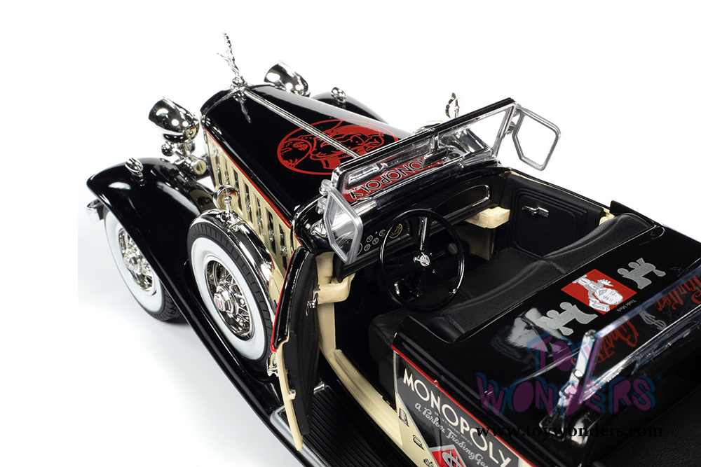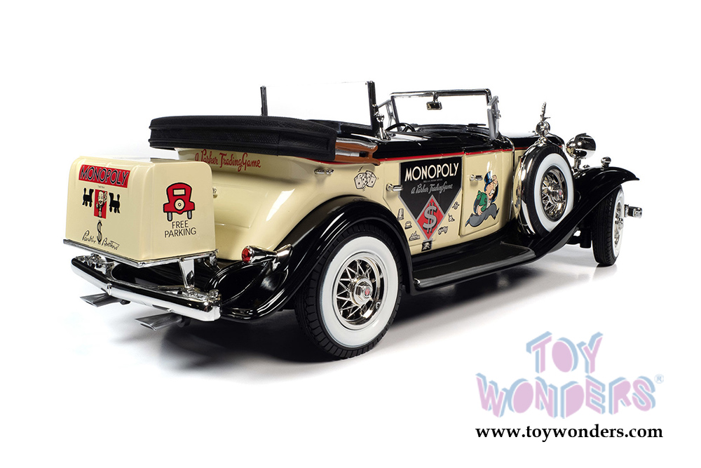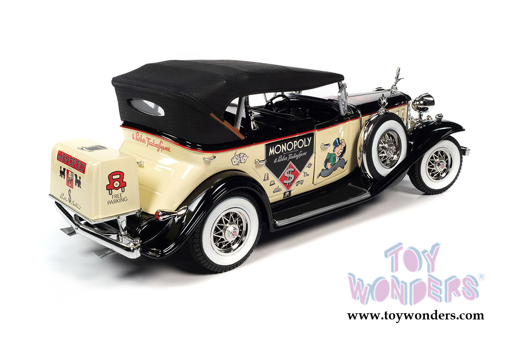 Auto World - MONOPOLY Cadillac V16 Sport Phaeton Convertible with Mr. Monopoly Figure (1932, 1/18 scale diecast model car, Cream/Black) AWSS127