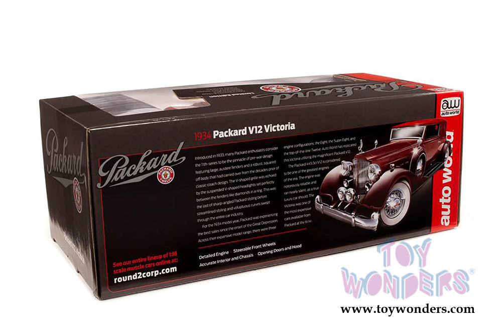 Auto World - Packard V12 Victoria Hardtop (1934, 1/18 scale diecast model car, Burgundy) AW271