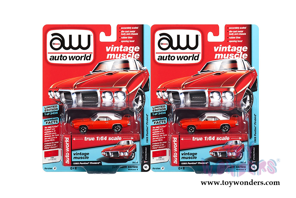 Auto World Premium - 2018 Release 4 | Pontiac® Firebird® (1969,1/64 scale diecast model car, Red/White) AWSP018/24A