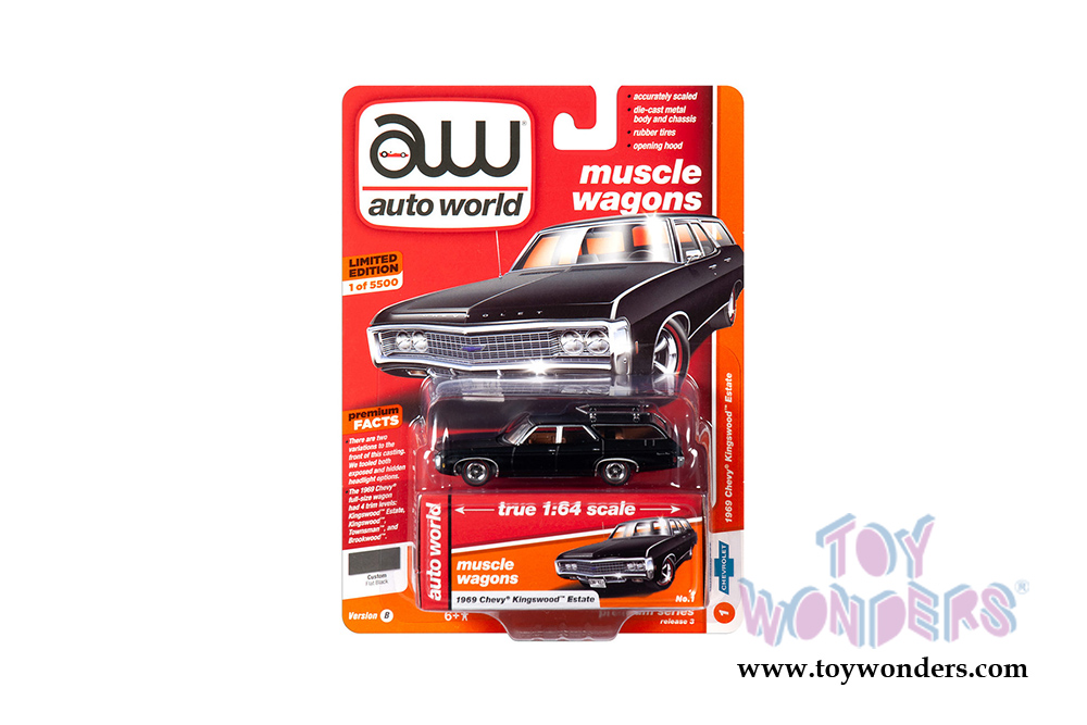 AW64202/48B Auto World Premium - 2019 Release 3 Set A. 1:64 scale diecast collectible model. 6-car set. These cars are about 3" long die cast metal cars. These cars feature detailed die-cast metal body and chassis, authentic factory colors and accurately scaled matching rims with rubber tires. Very Limited Quantities. Only 5,500 per car produced! Each car individually blister carded. Card size: 5.5" x 7.5". 6 pcs/inner. Manufactured by Auto World. AW64202/48B is in assorted colors and styles.
