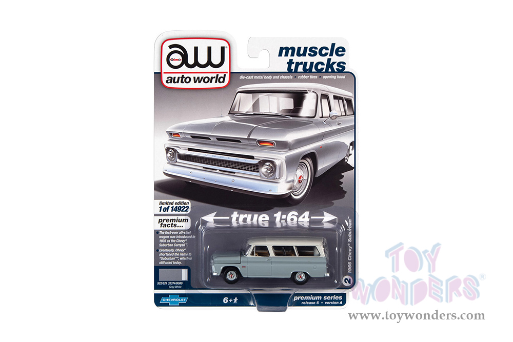 Auto World Premium - 2021 Release 5 | Chevrolet® Suburban™ "Muscle Trucks" (1966, 1/64 scale diecast model car, Gray Body w/White Roof) AWSP091/24A