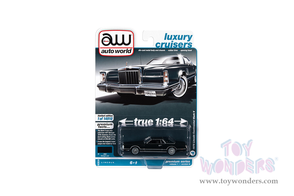 Auto World Premium - 2022 Release 1 Set A | Lincoln Continental Mark V "Luxury Cruisers" (1978, 1/64 scale diecast model car, Midnight Jade Green) AWSP097/24A