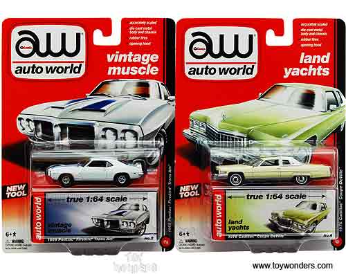 AW64002/48A Auto World - Release 1 with Mini-box. 1:64 scale diecast collectible model. These cars are about 3" long die cast metal cars. These cars feature openable hood, detailed die-cast chassis, and accurately scaled matching rims with rubber tires. Each car individually blister carded. Card size: 5.5" x 7.5". 6 pcs/inner. Manufactured by Auto World. AW64002/48A is in assorted styles. GM is a trademark of the General Motors Corporation.