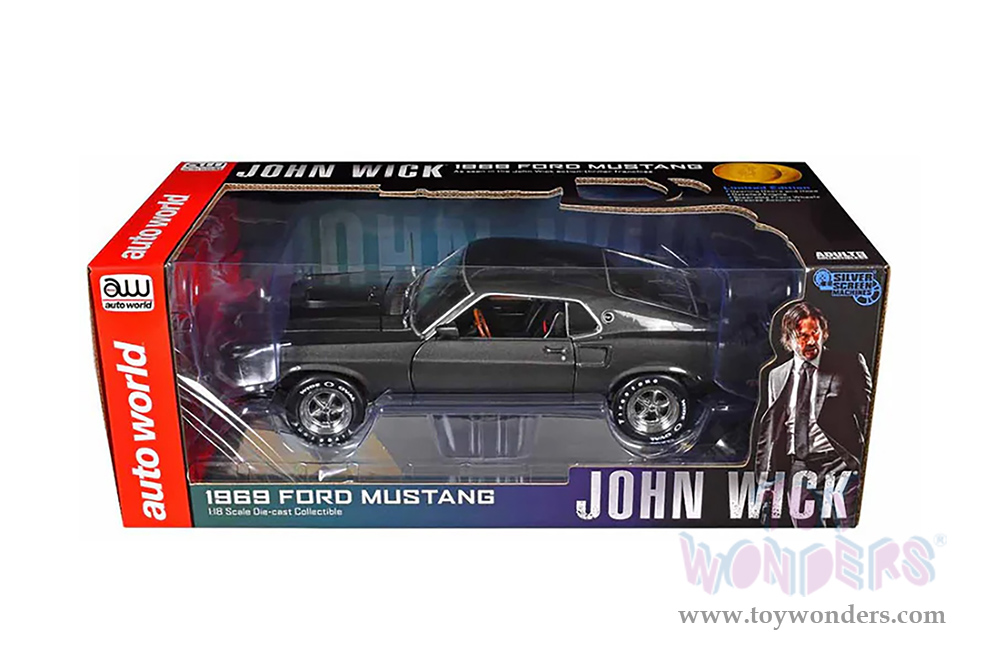 Auto World Silver Screen Machines | Ford Mustang John Wick (1969, 1/18 scale diecast model car, Hitman Gray/Black stripes) AWSS145 MAP: $99.99