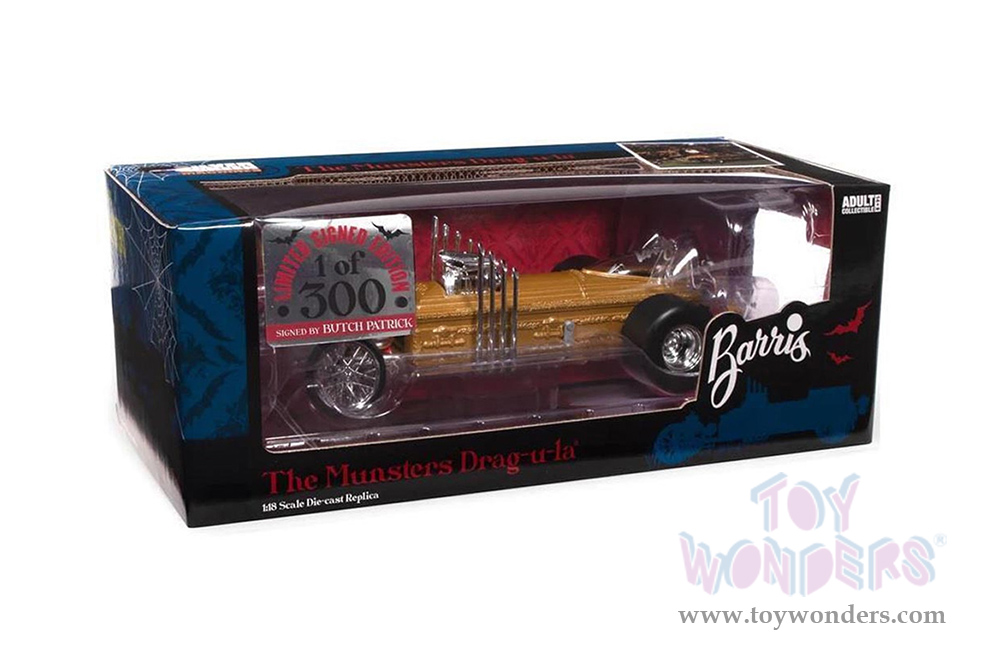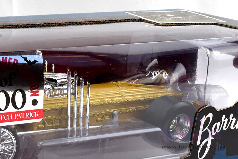 Auto World Silver Screen Machines - George Barris' Drag-u-la "The Munsters" with Butch Patrick Signature (1/18 scale diecast model car, Gold) AWSS139