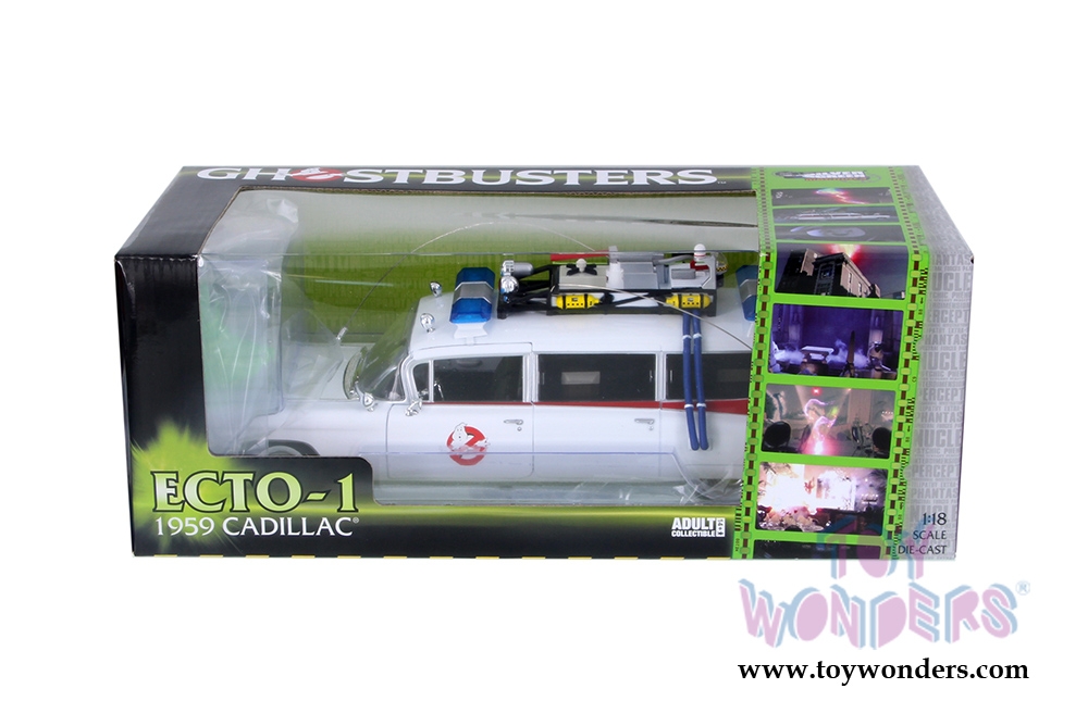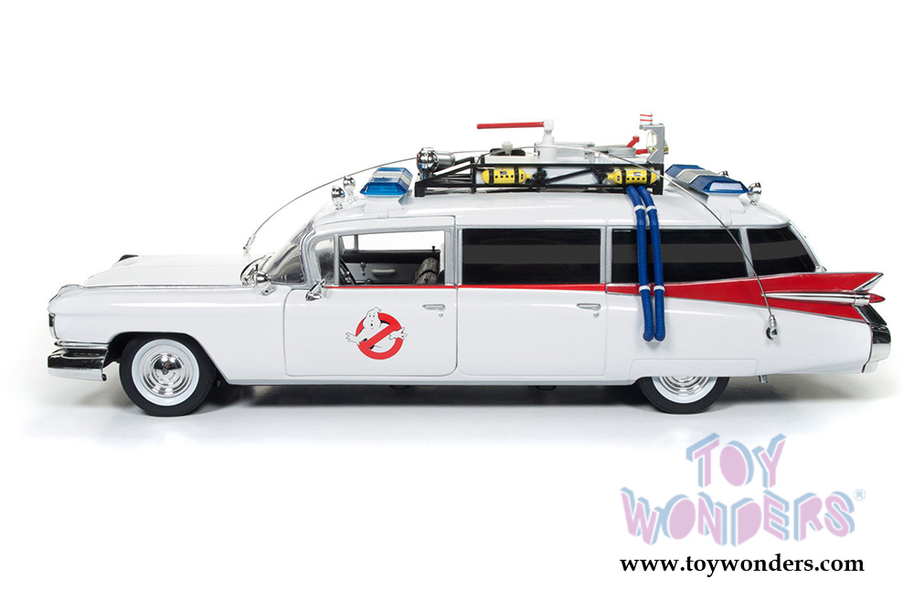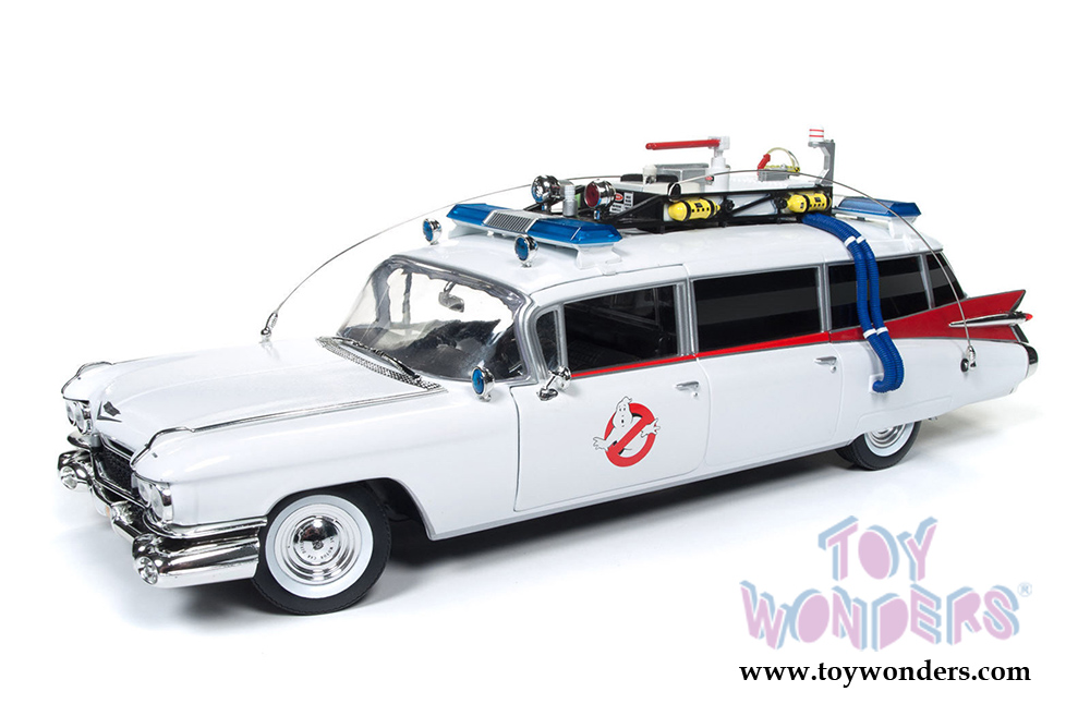 Auto World Silver Screen Machines - Ghostbuster Cadillac Ambulance Ecto-1 (1959, 1/18 scale diecast model car, White) AWSS118