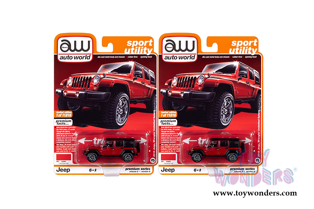 Auto World Sport Utility - Jeep® Wrangler Unlimited Sahara (2018,1/64 scale diecast model car, Firecracker Red w/Black Flat Roof) AWSP036/24A