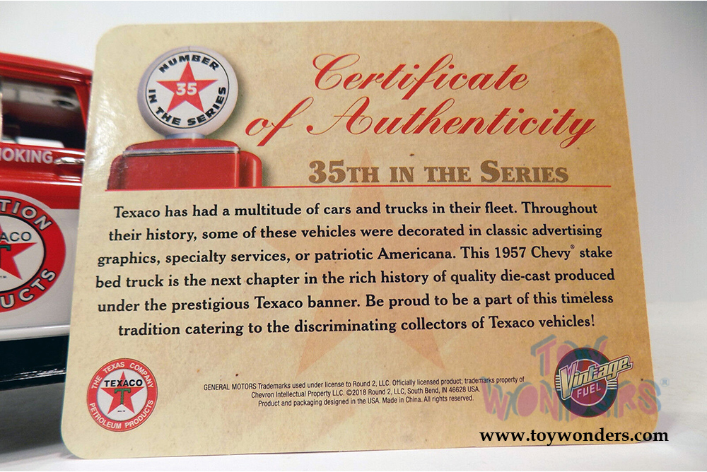 Auto World - Texaco® Oil Chevrolet® Stake Bed Truck (1957, 1/25 scale diecast model car, White/Red) CP7505