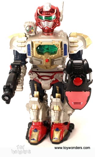319 Battery Operated Power Destroyer Robot. 17.5” robot. Gun & shield can be removed, 4 flashing lights, walks forward, and turns 45 degree. Requires 4 “AA” batteries (not included). Box size: 18" x 11.5" x 6.5".