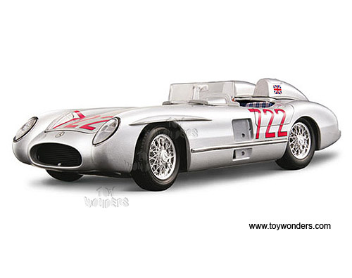 BBurago Gold - Mercedes-Benz 300 SLR M.M. Convertible #722 (1955, 1/18 scale diecast model car, Silver) 12054