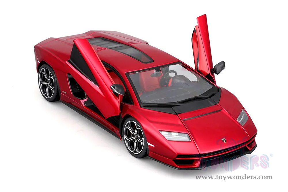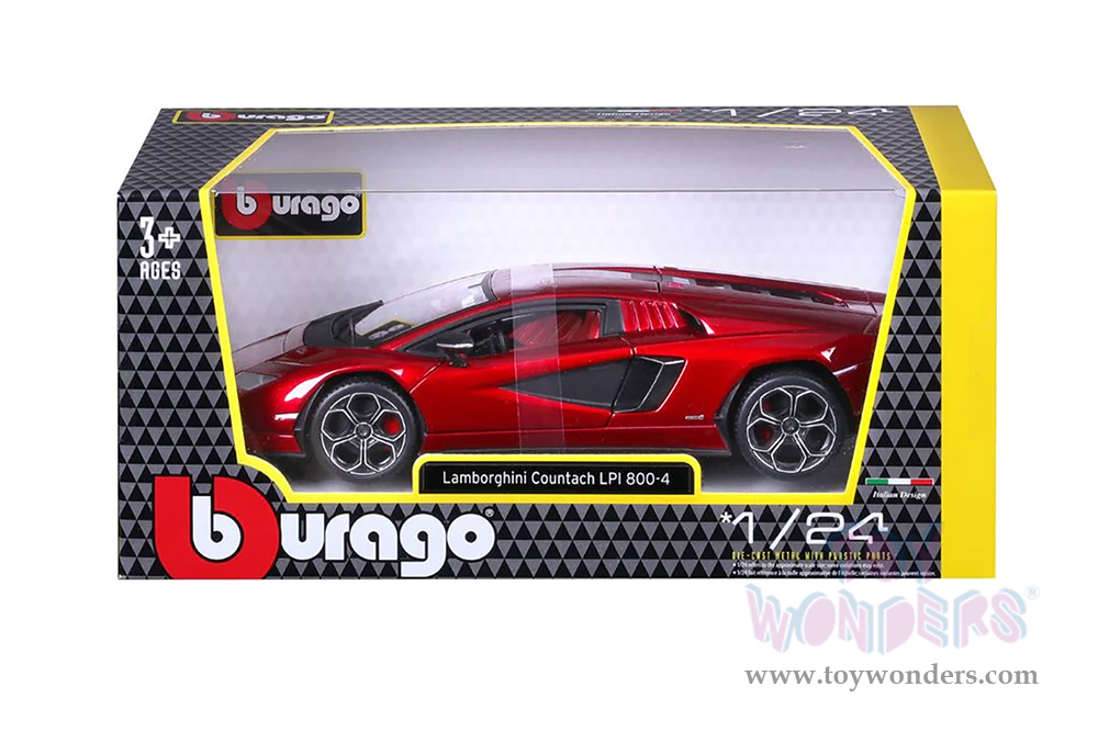 18-21102R BBurago - Lamborghini Countach LPI 800-4. 1:24 scale diecast collectible model car. This Lamborghini is a 7.5"L x 3.5"W x 2"H die cast metal car with openable doors. Italian design. This Lamborghini Countach is manufactured by BBurago. 18-21102R is in red color. Individually packed in a window box. Box size: 9.25"L x 4.5"W x 4"H.