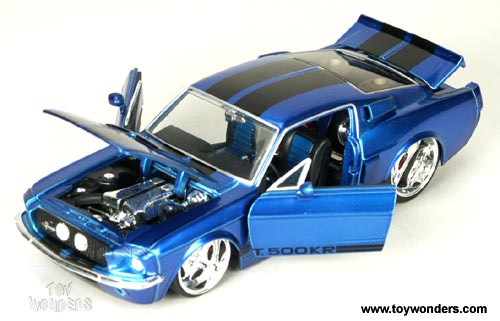 90214CC DUB City Big Time Muscle 1967 Ford Shelby Mustang. 1:24 scale diecast model car. This 1967 Shelby Mustang is a 7.75" long diecast with opening doors/hood/trunk and Maya Rims. This 67 Shelby Mustang is manufactured by Jada Toys. 4 pcs per display box. 16 pcs per inner box. 90214 in assorted colors.