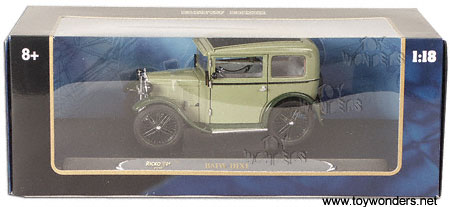 32138GN RICKO BMW Dixi. 1:18 scale diecast model. This BMW Dixi is a 6.25" long diecast car model car with opening doors/hood. Manufactured by Ricko; ref. no. 32138 in GREEN color with black top.