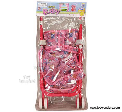 45881 Baby Stroller. 21" doll carrier in assorted colors. Sturdy construction. Each stroller is individually blister carded. Card size: 10.25" x 24".