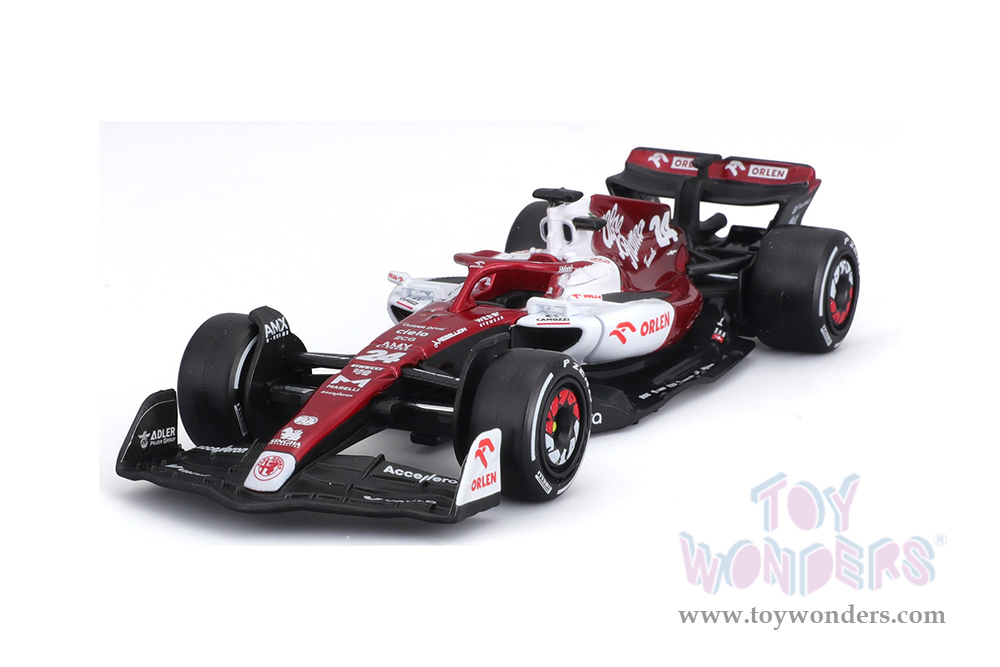 18-38067/ZHO Bburago Formula Racing - Alfa Romeo F1 Team Orlen C42 #24 Zhou Guanyu Formula One F1 Bahrain GP (2022). 1:43 scale diecast collectible model car. This Alfa Romeo Race car is a 5"L x 1.75"W x 1"H die-cast metal car. Extensive detail across the body, electrostatic paint coating. Sponsored by cielo, AMX, Zadara, Vauld and more. This Alfa Romeo Formula 1 is manufactured by Bburago. Item 18-38067/ZHO is in red and white. Individually packed in a window box. Box size: 5.5"L x 2.5"W x 2.75"H.