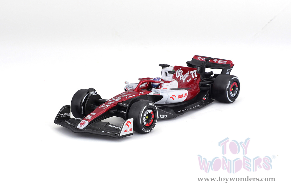 Bburago Formula Racing - Alfa Romeo F1 Team Orlen C42 #77 Valtteri Bottas with Driver Formula One F1 Bahrain GP (2022) (1/43 scale diecast model car, Red/White) 18-38068/BOT