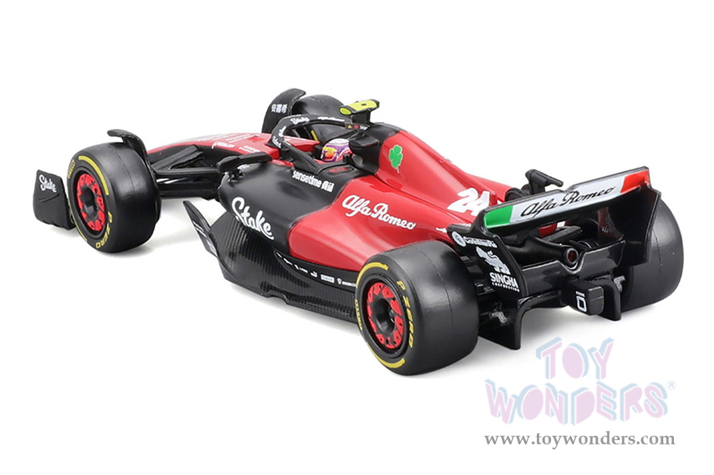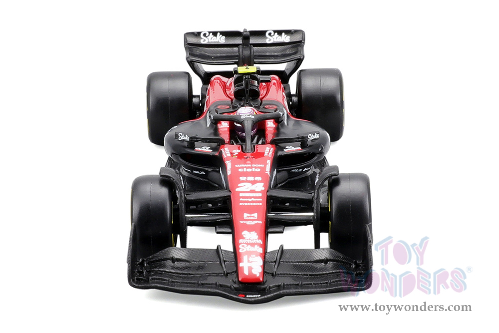 Bburago Formula Racing - Alfa Romeo F1 Team Stake C43 #24 Zhou Guanyu with Driver Formula One F1 Bahrain GP (2023) (1/43 scale diecast model car, Red/Black) 18-38086/24