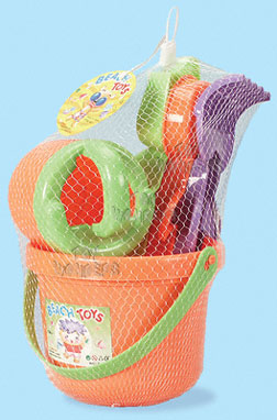 301 Beach Set. 5 pcs set include 5" high & 5.75"in diameter bucket with watering pot and 3 sand tools.