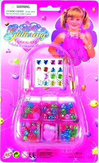 1901/6B Beads Set. See-through purse with glitter beads, and stickers. Blister card size: 6"x9.75". 24 pcs/inner. Dollar item.