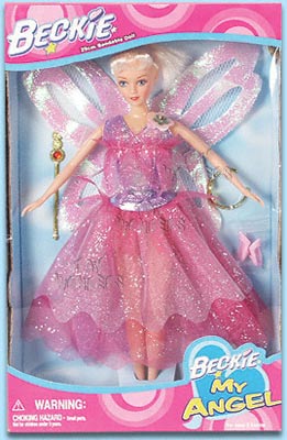 31122 Beckie My Angel Bendable. 10.5" doll with angel dress and wings. Tiara, wand, and shoes included. Box size: 8"Lx2"Wx12.5"H. 12 pcs/inner.