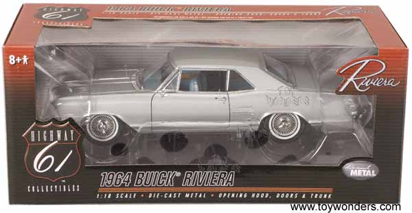 60086SV HIGHWAY 61 1964 Buick Riviera. 1:18 scale. 11.5" long die cast car with opening doors/hood/trunk. By F.F. Ertl III, Inc. 60086 in SILVER color.