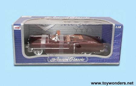 30371BG ANSON Cadillac El Dorado Convertible (1953) Scale: 1:18 Cadillac 11.5"L die cast metal classic oldies car features highly detailed engine and components, opening doors, hood, and trunk, and working steering. Display plaque included. Color: Burgundy
