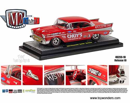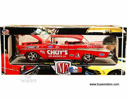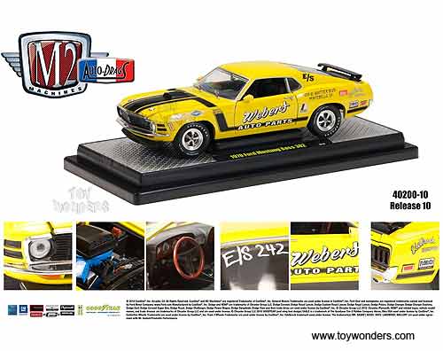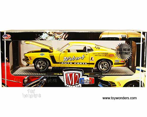 Castline M2 Machines Auto-Drags - Ford Mustang Boss 302 Hard Top & Chevy Belair Hard Top (1970/ 1957, 1/24 scale diecast model car, Bright Yellow/ Red) 40200/10