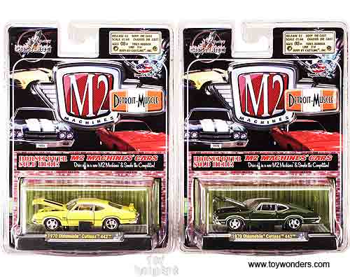 31600/04 Castline M2 Machines - Detroit-Muscle Release 4. 1:64 scale, 3" long die cast model cars with openable hood & doors. GM is a trademark of the General Motors Corporation. Each car sits on a display plaque, and individually blister carded. Card size is 5.5" x 7.25". Manufactured by Castline. 6 pcs per inner. Assortment includes: