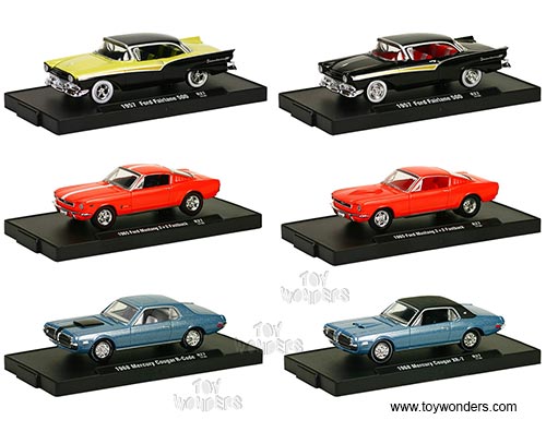 11228/27 Castline M2 Machines - Drivers Release 27. 1:64 scale diecast collectible models, 3" long die cast model cars with openable hood & doors. GM is a trademark of the General Motors Corporation. Each car sits on a display plaque, and individually blister carded. Card size is 5.5" x 7.25". Manufactured by Castline. 6 pcs per inner. Assortment includes: