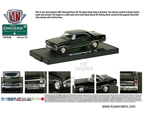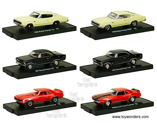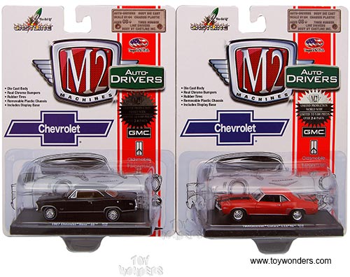 11228/28 Castline M2 Machines - Drivers Release 28. 1:64 scale diecast collectible models, 3" long die cast model cars with openable hood & doors. GM is a trademark of the General Motors Corporation. Each car sits on a display plaque, and individually blister carded. Card size is 5.5" x 7.25". Manufactured by Castline. 6 pcs per inner. Assortment includes: